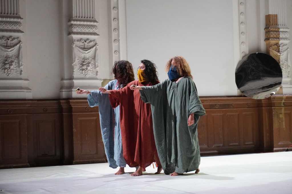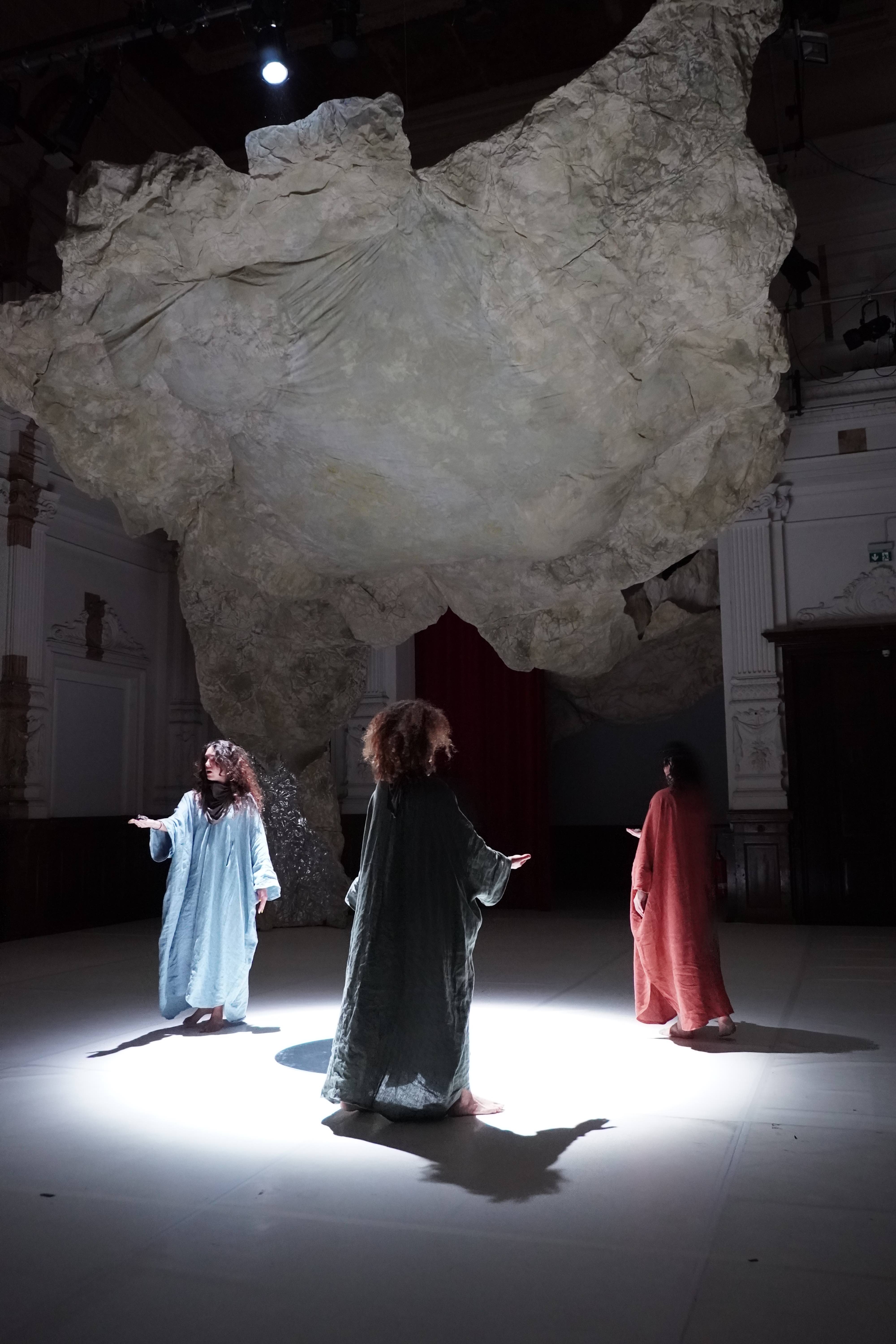 The dancer and choreographer Silvia Ospina has teamed up with the narrator Aliza Yanes, the musician and composer Biliana Voutchkova and the video artist Claire Fristot to create their own artistic cosmos from their experiences.