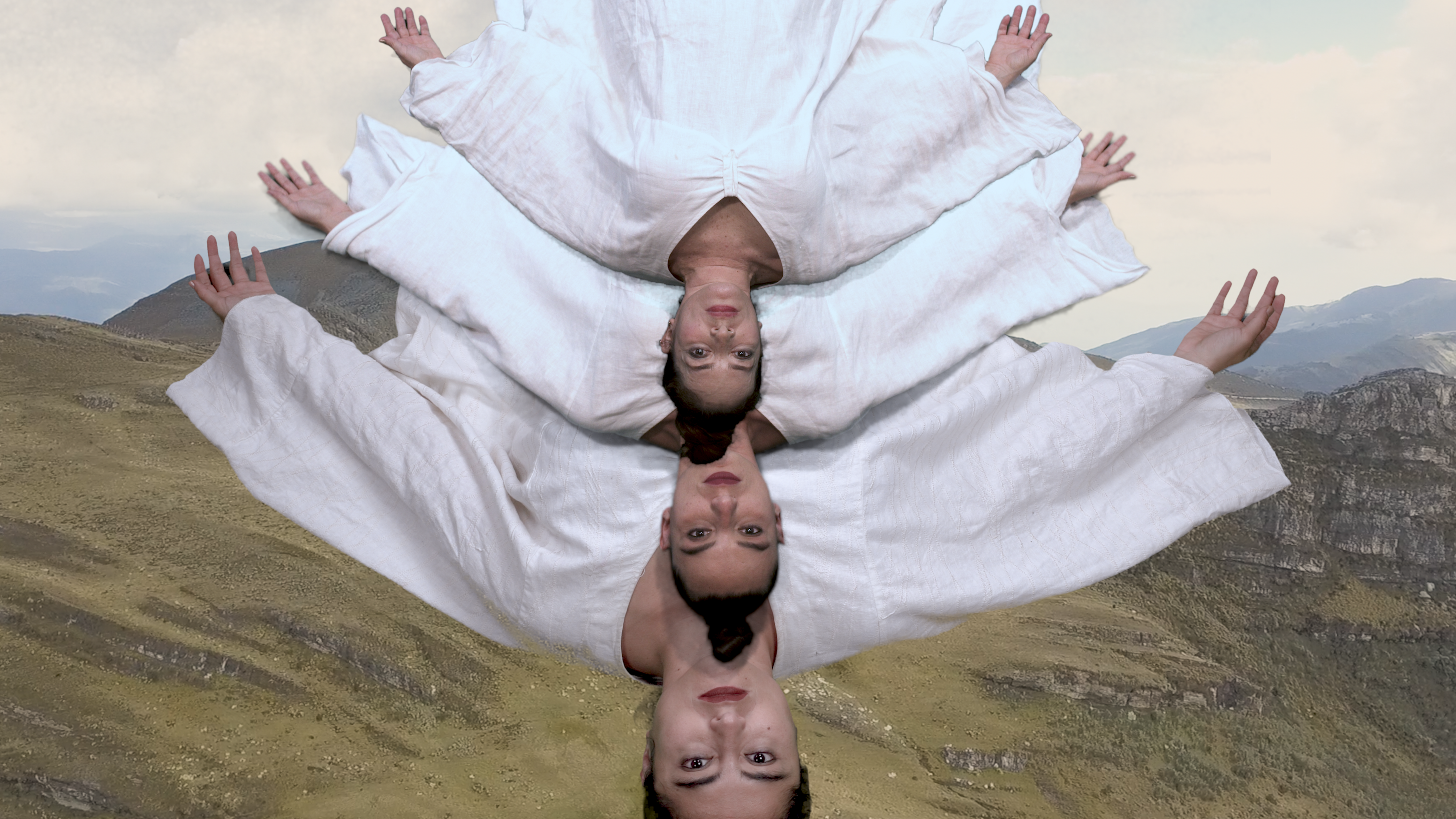 Women have been the caretakers of life. The tradition of their struggles for the defence of land and resources has been the set of attitudes and behaviours that seek the autonomy and restoration of different societies and communities. In STELLAR FLUVIAL this care is transported throughout the visual and choreographic narrative, embodied in three women, each of whom seems to belong to different and parallel times. The women accompany each other on a pilgrimage, where the feeling of protection, collectivity and exchange between them allows them to cross and transcend time.